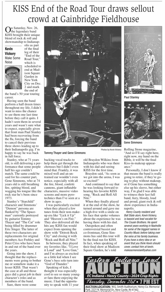 Henry County resident and Ball State alum, Kevin Vickery, is bassist and lead vocalist for The Cousin Brothers. He spent several years working in Nashville for some of the biggest names in Country Music before taking over the reins at his family business. If you have a story idea or an event that you think Kevin should cover, contact him at kevin.makesomenoise@yahoo.com