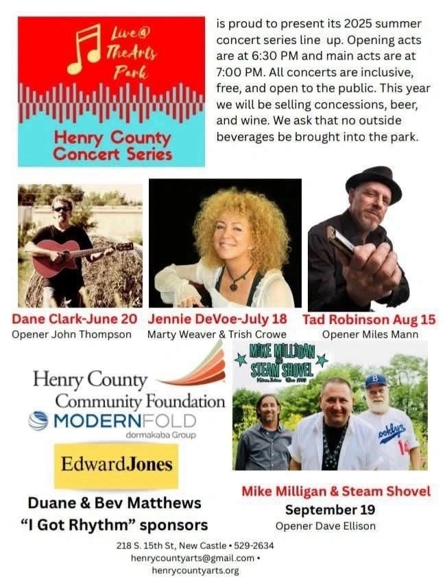 As I’ve said before, it takes a great deal of work and planning to bring a series of events like this to fruition and part of what makes that possible are the corporate sponsors. The Henry County Concert Series thanks Modern Fold, Henry County Community Foundation, Edward Jones, New Castle – Henry County Chamber of Commerce, and Art Association of Henry County for their support.