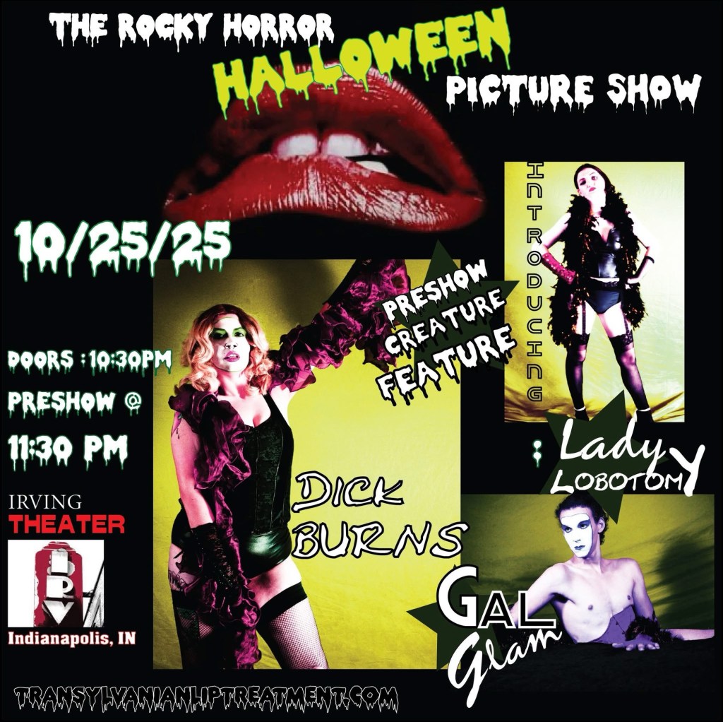 With all that in mind. I’ll be heading to the Irving Theater in Indianapolis for a midnight showing on Saturday, October 25th. The show will feature the Transylvanian Lip Treatment (TLT) who has carried on the live shadowcast tradition for over ten years and is one of the most active casts in the midwest. Their show is billed as “an experience of uncensored fun and debauchery that pulls the audience in to be a part of the show.” There will also be another showing of Rocky Horror Picture Show at Irving Theater featuring TLT on November 15th.